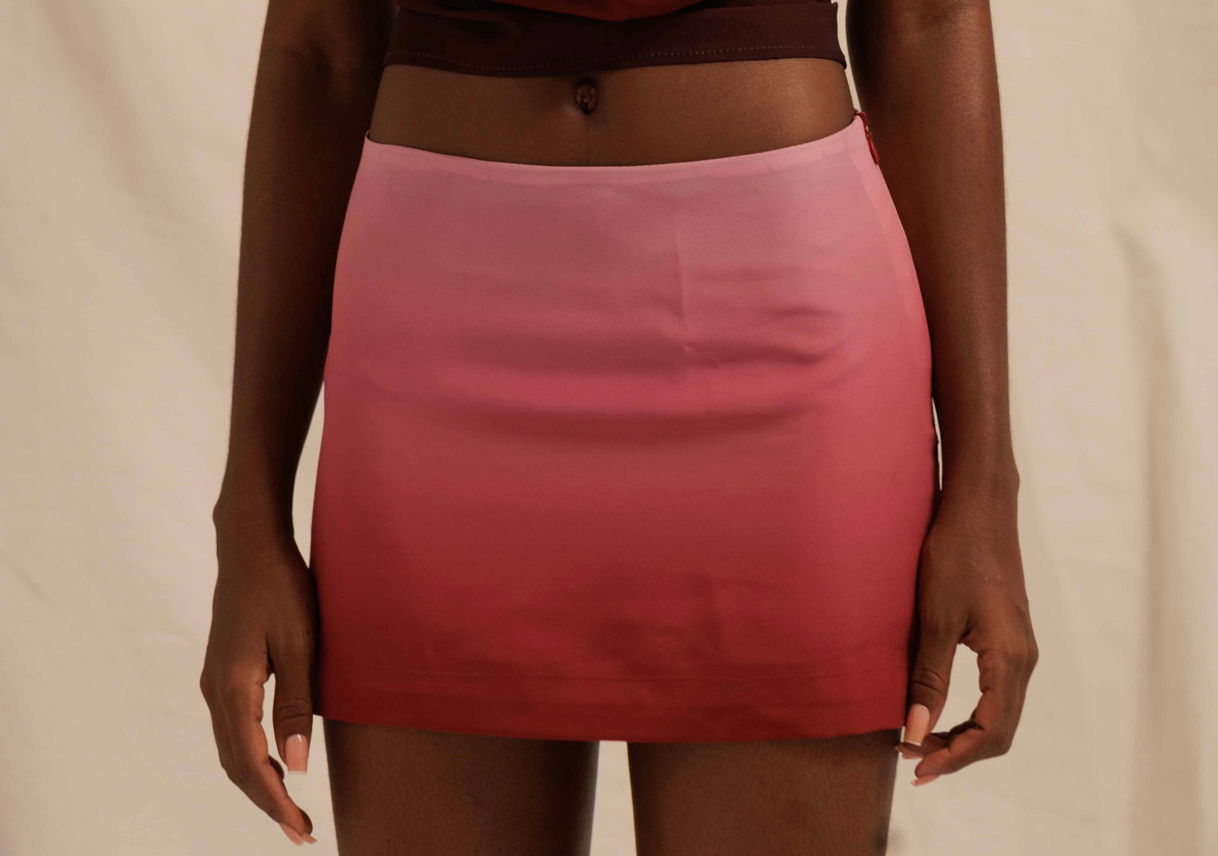Make a statement in our Rossa Mini Skirt, made from a thick chiffon fabric with a gradient print. With an ultra low rise look, you're sure to turn heads.