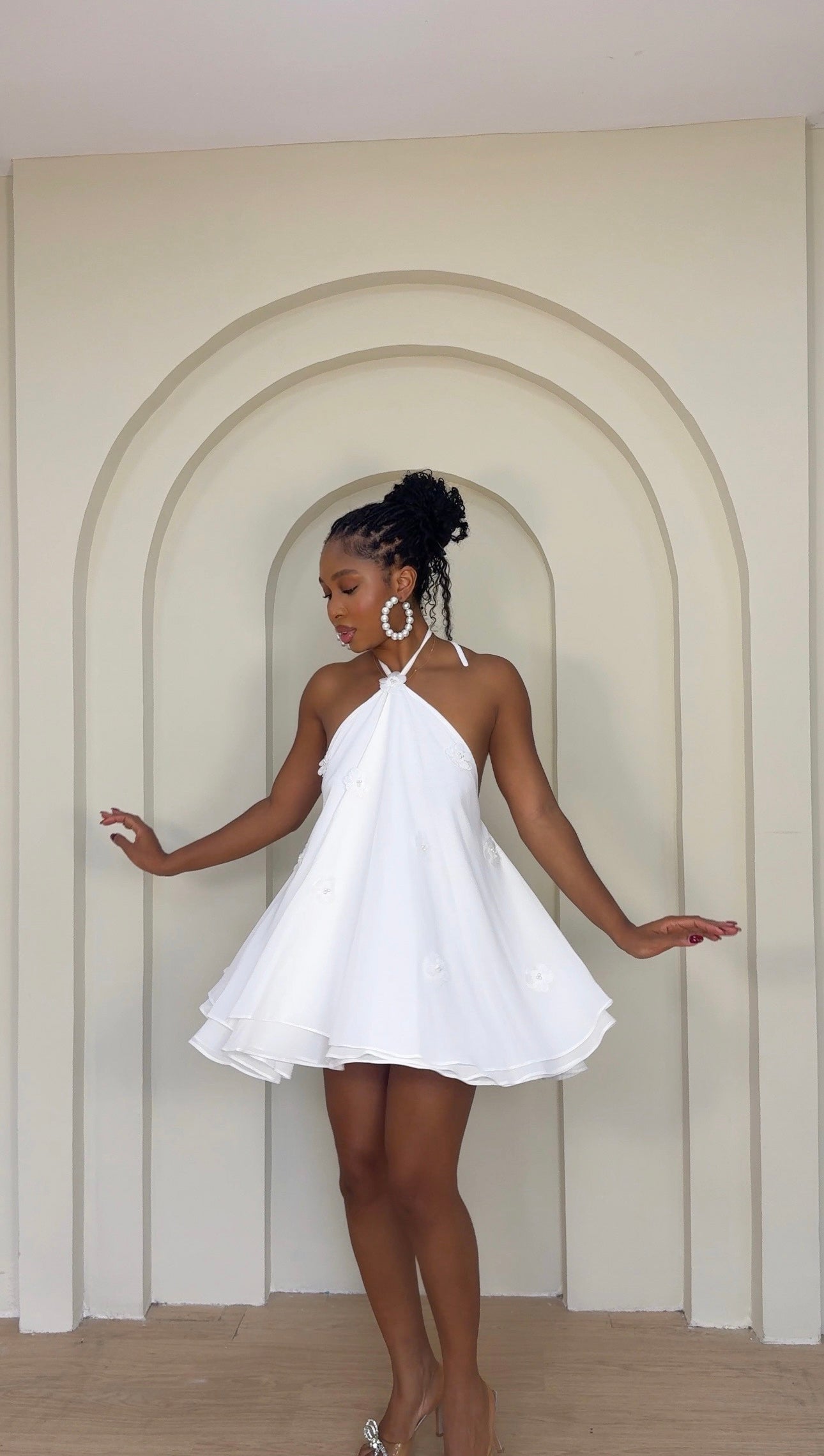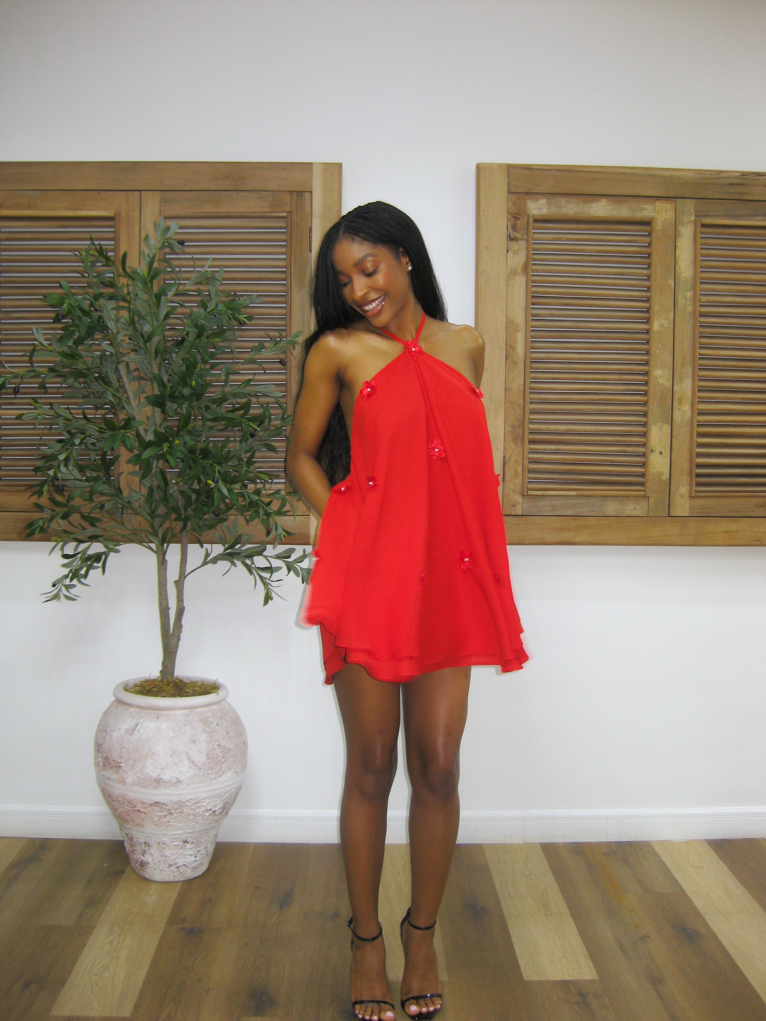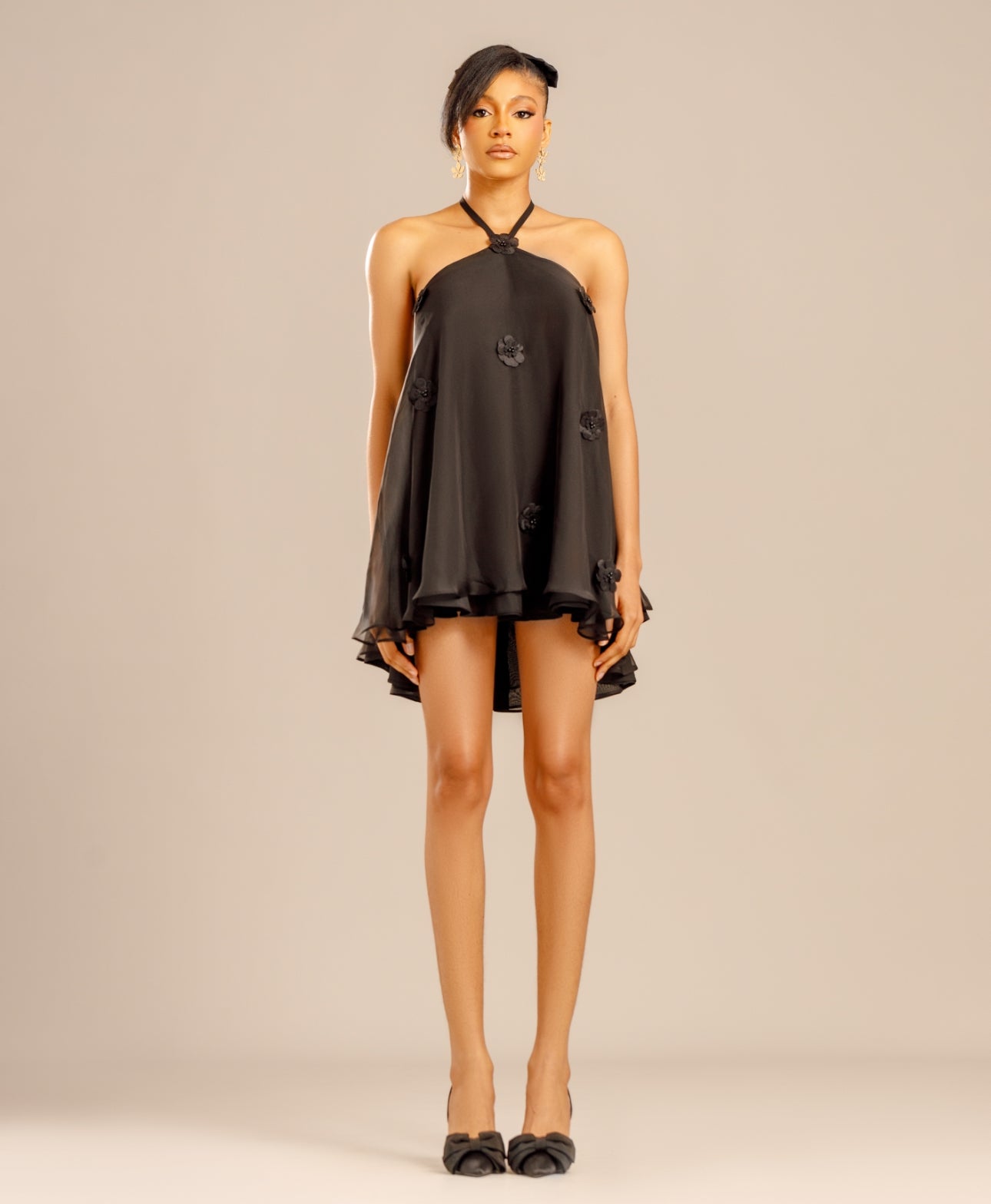 Get ready to turn heads in the Zara Dress! This playful babydoll dress will definitely add some fun to your wardrobe. Its mini length, 3 layers of chiffon and floral adornments give it a flirty and flowy look. Available in black, pink and white